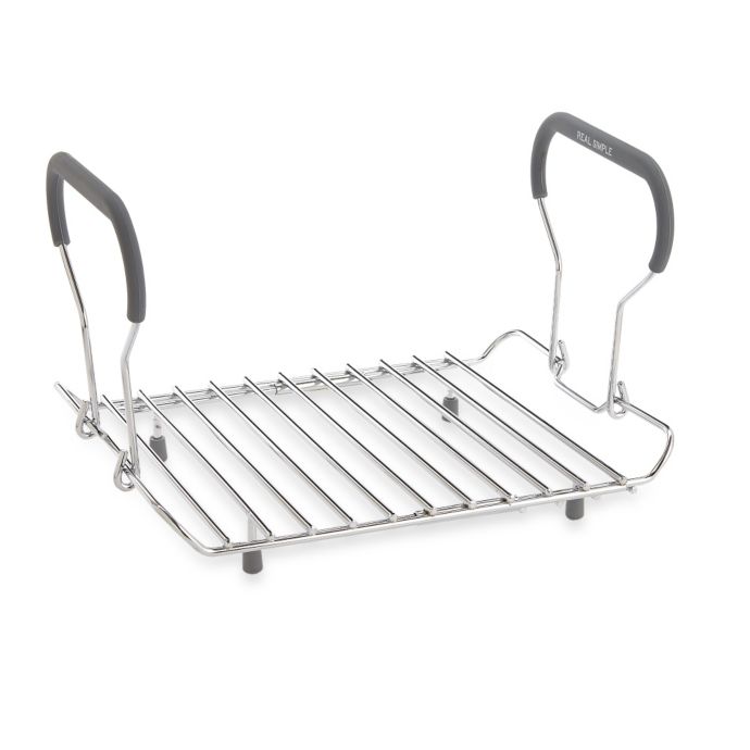 The real simple expandable roasting rack helps keep food off the bottom of your pan and let unwanted fat and oil drip away.
